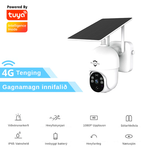 Myndavél fyrir allar aðstæður! Úti 4G öryggismyndavél sem þolir íslenska veðrið og vind! Tekur upp í 1080P. Myndavélin skynjar einnig hreyfingu, læ...